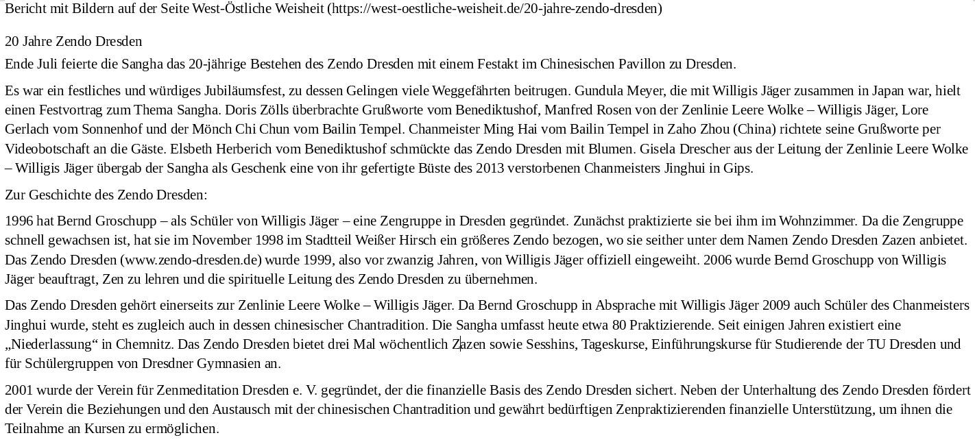 27.07.-04.08.2019 Zendo-Jubiläum und Chanqi